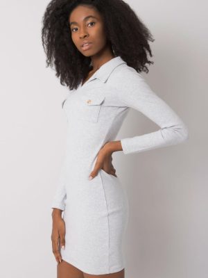 Φόρεμα σε pencil γραμμή από ύφασμα με ραβδώσεις. Φόρεμα με μακριά μανίκια και λαιμόκοψη v.