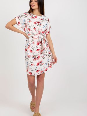Καλοκαιρινό φόρεμα με κοντά μανίκια και στρογγυλή λαιμόκοψη. Ζώνη με δέσιμο στη μέση. Φόρεμα από ύφασμα με ενδιαφέρον φλοράλ μοτίβο.