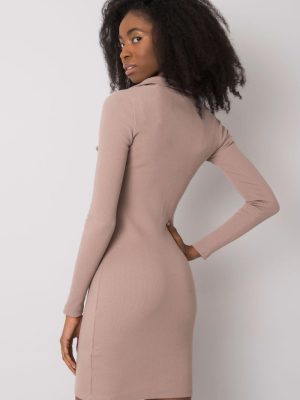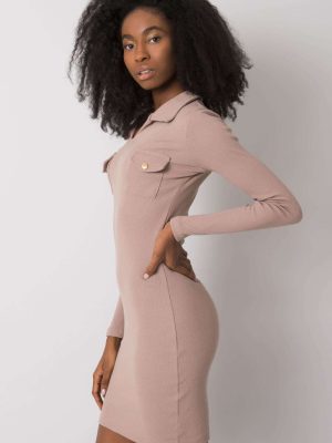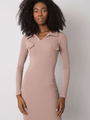 Φόρεμα σε pencil γραμμή από ύφασμα με ραβδώσεις. Φόρεμα με μακριά μανίκια και λαιμόκοψη v.