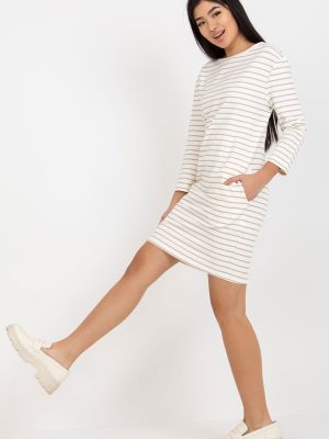 Φόρεμα σε ίσια γραμμή με μακριά μανίκια και στρογγυλή λαιμόκοψη. Τσέπες στα πλάγια. Φόρεμα από ριγέ ύφασμα.