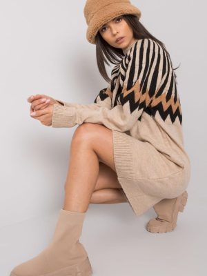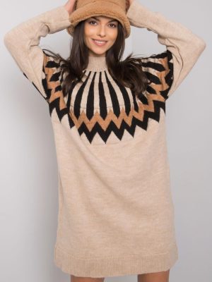 Πλεκτό φόρεμα με μακριά μανίκια και ζιβάγκο. Φόρεμα διακοσμημένο με γεωμετρικό μοτίβο. Ιδανικό για την καθημερινότητα και όχι μόνο.