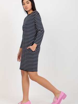 Φόρεμα σε ίσια γραμμή με μακριά μανίκια και στρογγυλή λαιμόκοψη. Τσέπες στα πλαϊνά. Φόρεμα από ριγέ ύφασμα.