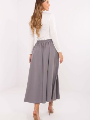 Αυτή η κομψή μίντι φούστα είναι ο ιδανικός συνδυασμός κλασικού και άνετου, τέλεια για καθημερινή χρήση, για δουλειά ή για πιο επίσημες περιστάσεις. Κατασκευασμένη από υψηλής ποιότητας μίγμα πολυεστέρα και ελαστάνης, εξασφαλίζει άνεση στο φόρεμα, αντοχή και όμορφη πτώση του υλικού. Το μοντέλο με την λεία υφή ξεχωρίζει με το πλισέ μπροστινό μέρος, το οποίο προσθέτει ελαφρότητα και θηλυκό χαρακτήρα. Στο πίσω μέρος υπάρχει ραμμένο λάστιχο, χάρη στον οποίο η φούστα προσαρμόζεται ιδανικά στη σιλουέτα και προσφέρει άνεση όλη την ημέρα. Ένα επιπλέον πλεονέκτημα είναι οι πλάγιες, εισαγόμενες τσέπες και το διακοσμητικό κουμπί, που τονίζει διακριτικά τον κομψό στυλ του μοντέλου. Η απουσία κλεισίματος καθιστά τη φούστα ιδιαίτερα πρακτική και εύκολη στην τοποθέτηση. Είναι ένα καθολικό στοιχείο της ντουλάπας, που θα αποδειχθεί εξαιρετικό τόσο σε γραφειακές εμφανίσεις, όσο και σε συναντήσεις με πιο επίσημο τόνο.