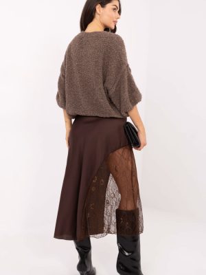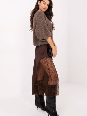 Μια στιλάτη και γυναικεία φούστα midi με κλος είναι ο ιδανικός συνδυασμός κομψότητας και άνεσης. Κατασκευασμένη από ύφασμα με λεία υφή, αγκαλιάζει όμορφα τη σιλουέτα, προσθέτοντας της ελαφρότητα και διακριτική χάρη. Στη μέση, έχει ραμμένο ελαστικό λάστιχο που εξασφαλίζει άριστη εφαρμογή και άνεση κατά την διάρκεια της ημέρας. Η απουσία κλεισίματος καθιστά τη φούστα εξαιρετικά πρακτική και άνετη στη χρήση. Ένα μοναδικό στοιχείο αυτού του μοντέλου είναι η δαντελένια вставка αριστερά, που εκθέτει διακριτικά το πόδι και προσθέτει μια κομψή, γυναικεία αίσθηση. Το μήκος midi καθιστά τη φούστα ιδανική για διάφορες περιστάσεις, από τις καθημερινές και το γραφείο, μέχρι κοινωνικές συναντήσεις ή εκδηλώσεις.