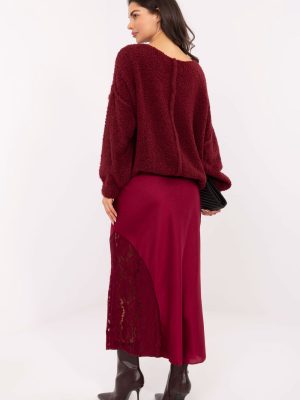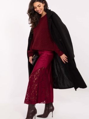 Μια κομψή φούστα σε σχήμα γοργόνας, κατασκευασμένη από ύφασμα με ποικιλόμορφη υφή, είναι η ιδανική επιλογή τόσο για καθημερινές όσο και για πιο επίσημες περιστάσεις. Ραμμένη από υψηλής ποιότητας μείγμα πολυεστέρα, βισκόζης και ελαστάνης, αγκαλιάζει όμορφα τη σιλουέτα, τονίζοντας τις γυναικείες καμπύλες. Στη μέση έχει ραμμένο ελαστικό λάστιχο που εξασφαλίζει άνεση και ιδανική εφαρμογή χωρίς την ανάγκη κουμπώματος. Η απουσία κουμπώματος καθιστά τη φούστα εξαιρετικά άνετη και εύκολη στην τοποθέτηση. Η διακριτική δαντελένια λεπτομέρεια στα αριστερά στο κάτω μέρος προσθέτει μια λεπτή, γυναικεία αίσθηση και τονίζει το κομψό στυλ του μοντέλου. Το μήκος midi και η ελαφρώς φαρδιά βάση σε στυλ γοργόνας εξασφαλίζουν ότι η φούστα συνδυάζεται τέλεια τόσο με πουκάμισο για τη δουλειά όσο και με κομψό μπλουζάκι για συνάντηση ή δεξίωση.