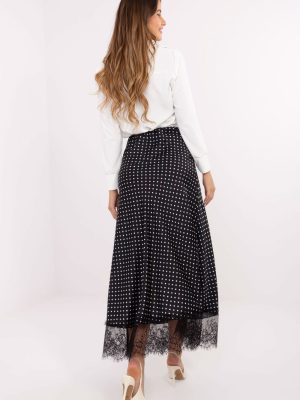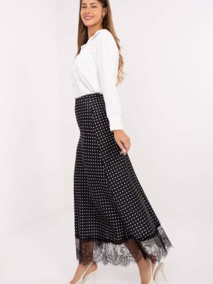 Μια στυλάτη και ρομαντική φούστα μήκους μίντι, κατασκευασμένη από ευχάριστο υλικό, πολυεστέρας με προσθήκη ελαστάνης, που εξασφαλίζει άνεση κατά τη διάρκεια της εφαρμογής και τέλεια προσαρμογή στη σιλουέτα. Το μοντέλο διακοσμείται από μια λεπτή δαντελένια λωρίδα στο κάτω μέρος, προσφέροντας κομψότητα και διακριτικό χαρακτήρα. Στη μέση έχει επενδυθεί με ελαστική ζώνη, γεγονός που επιτρέπει στη φούστα να προσαρμόζεται τέλεια στη μέση και να μην απαιτεί κουμπώματα. Το υλικό διαθέτει μια μοντέρνα εκτύπωση με βούλες, προσθέτοντας ελαφρότητα και γοητεία στη συνολική εμφάνιση. Είναι ένα ευέλικτο μοντέλο που μπορεί να φορεθεί τόσο καθημερινά, στη δουλειά, όσο και σε επίσημες περιστάσεις.