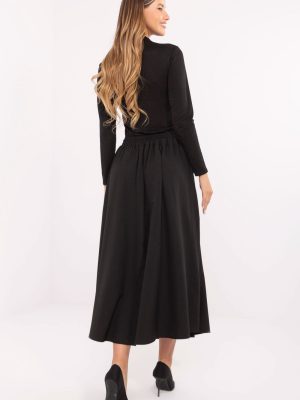 Αυτή η κομψή μεσαία φούστα είναι ο ιδανικός συνδυασμός κλασικής και άνετης αισθητικής, τέλεια για καθημερινή χρήση, για τη δουλειά ή για πιο επίσημες περιστάσεις. Κατασκευασμένη από υψηλής ποιότητας μείγμα πολυεστέρα και ελαστάνης, προσφέρει άνεση στη φθορά, αντοχή και όμορφη ράφωση του υφάσματος. Το μοντέλο με λεία υφή ξεχωρίζει για το πλισέ μπροστά, που προσθέτει ελαφρότητα και θηλυκό χαρακτήρα. Στο πίσω μέρος υπάρχει εσωτερική ελαστική ζώνη, που επιτρέπει στη φούστα να προσαρμόζεται τέλεια στη σιλουέτα και παρέχει άνεση καθ’ όλη τη διάρκεια της ημέρας. Ένα επιπλέον πλεονέκτημα είναι οι πλευρικές, ενσωματωμένες τσέπες καθώς και το διακοσμητικό κουμπί, που υπογραμμίζει διακριτικά το κομψό στυλ του μοντέλου. Η απουσία κλεισίματος καθιστά τη φούστα εξαιρετικά πρακτική και εύκολη στην τοποθέτηση. Είναι ένα σύγχρονο στοιχείο της γκαρνταρόμπας, που λειτουργεί τέλεια τόσο σε γραφειακές στιλιστικές ιδέες όσο και σε συναντήσεις με πιο επίσημο τόνο.