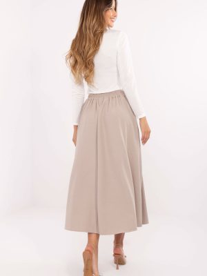 Αυτή η κομψή φούστα midi είναι ο ιδανικός συνδυασμός κλασικής και άνετης εμφάνισης, τέλεια για καθημερινή χρήση, για δουλειά ή για πιο επίσημες περιστάσεις. Κατασκευασμένη από υψηλής ποιότητας μείγμα πολυεστέρα και ελαστάνης, προσφέρει άνεση κατά τη διάρκεια της ημέρας, ανθεκτικότητα και όμορφη ραφή του υλικoύ. Ο μοντέρνος σχεδιασμός με τη λεία επιφάνεια ξεχωρίζει με την πιέτα μπροστά, που προσθέτει ελαφρότητα και θηλυκότητα. Στο πίσω μέρος υπάρχει εσωτερική ελαστική μέση, χάρη στην οποία η φούστα προσαρμόζεται τέλεια στη σιλουέτα και παρέχει άνεση όλη την ημέρα. Ενα επιπλέον πλεονέκτημα είναι οι πλευρικές, κρυφές τσέπες και το διακοσμητικό κουμπί, που τονίζει διακριτικά την κομψή στυλιστική γραμμή του μοντέλου. Η απουσία κλεισίματος καθιστά τη φούστα εξαιρετικά πρακτική και εύκολη στην εφαρμογή. Είναι ένα καθολικό στοιχείο ντουλάπας που ταιριάζει απόλυτα τόσο σε επαγγελματικές εμφανίσεις όσο και σε συναντήσεις με πιο επίσημο χαρακτήρα.