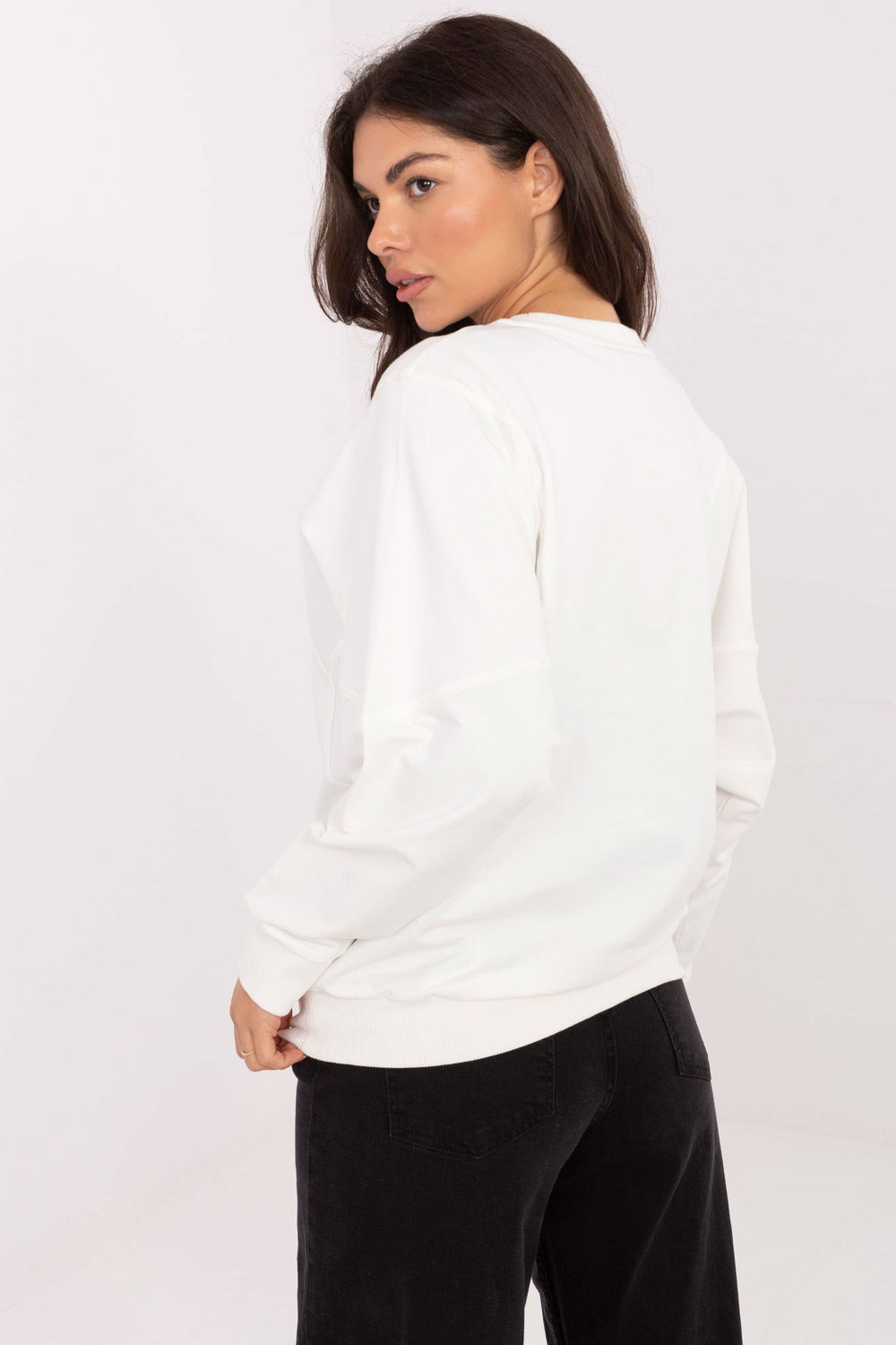 Η γυναικεία casual μπλούζα με μακριά μανίκια είναι μια άνετη και ευέλικτη πρόταση για κάθε μέρα. Κατασκευασμένη από μαλακό βαμβάκι με προσθήκη ελαστάνης, εξασφαλίζει άνεση κατά την πλήρη εφαρμογή της στη σιλουέτα. Το κανονικό μήκος και η κλασική, στρογγυλή λαιμόκοψη κάνουν τη μπλούζα να ταιριάζει τέλεια τόσο με παντελόνια όσο και με φούστες σε καθημερινές στυλιστικές επιλογές. Το μοντέλο με την απλή υφή, εμπλουτισμένο με μια διακριτική ετικέτα στο μπροστινό μέρος, διακρίνεται για το μινιμαλιστικό του σχέδιο, κάνοντάς το κατάλληλο για πολλές περιστάσεις. Η έλλειψη κλεισίματος εξασφαλίζει ελευθερία και απλότητα στη χρήση.