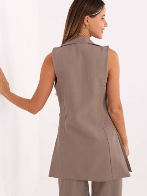 Η κομψή, μακριά γιλέκο γυναικεία χωρίς κούμπωμα είναι η στυλάτη βάση για πολλές εμφανίσεις. Κατασκευασμένη από ύφασμα υψηλής ποιότητας σε συνδυασμό πολυεστέρα και ελαστάνης, προσφέρει άνεση κατά τη διάρκεια της φόρεσης και κομψή εμφάνιση. Το μοντέλο ξεχωρίζει για τις περαστές πέτες και τις σχισμές στα πλάγια, που προσδίδουν στην σιλουέτα ελαφρότητα και ελευθερία κινήσεων. Το λείο ύφασμα υπογραμμίζει τον πολυδιάστατο χαρακτήρα της γιλέκου, ενώ η φόδρα εξασφαλίζει καλαίσθητη φινίρισμα. Η αμάνικη γραμμή της επιτρέπει την άψογη σύνθεση τόσο με πουκάμισο, μπλούζα όσο και με λεπτό γκολφ. Ιδανική για πολλές περιστάσεις, είναι κατάλληλη για επίσημες εμφανίσεις, για τη δουλειά και σε κομψές καθημερινές ενδυματολογίες.