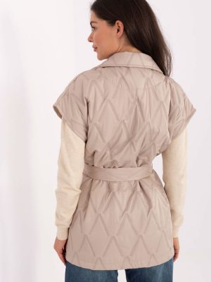 Κομψά γυναικεία φουσκωτή γιλέκα με τυπικό μήκος, κλείνει με κουμπί και διαθέτει κλασικά πέτα. Φτιαγμένο από πολυεστέρα, με συνθετική επένδυση, είναι ελαφρύ και άνετο στη φθορά, ενώ ταυτόχρονα πρακτικό κατά την μεταβατική περίοδο, ιδανικό για φθινόπωρο, χειμώνα και άνοιξη. Το μοντέλο ξεχωρίζει για την όμορφη ραφή και την ποικιλόμορφη υφή του υλικού, γεγονός που του προσδίδει μοναδικό χαρακτήρα. Στη μέση υπάρχει ζώνη για δέσιμο, η οποία τονίζει όμορφα τη σιλουέτα. Οι τσέπες που μπαίνουν προσθέτουν λειτουργικότητα, ενώ η γραβάτα στην πέτα αποτελεί κομψό, διακριτικό στοιχείο. Είναι η ιδανική πρόταση για καθημερινή χρήση και για δουλειά, συνδυάζει άνεση, γυναικεία κομψότητα και διαχρονικό στυλ, δημιουργώντας ένα универсτικό στοιχείο της ένδυσης.