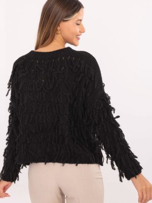 Γυναικείο πουλόβερ boho καθημερινής χρήσης, φτιαγμένο από μαλακή και ευχάριστη στην αφή μείξη πολυακρυλίου, πολυαμιδίου, λινών και βισκόζης, εξασφαλίζοντας άνεση και ζεστασιά. Το μοντέλο έχει κανονικό μήκος και μακριά μανίκια με κλασικό, στρογγυλό λαιμόκοψη που τονίζει την ελαφρότητα της γραμμής. Η ποικιλόμορφη υφή του υφάσματος σε συνδυασμό με τις διακοσμητικές φούντες σε όλη την επιφάνεια του πουλόβερ του δίνει μοναδικό, καλλιτεχνικό χαρακτήρα. Ιδανικό για καθημερινές, άνετες εμφανίσεις σε boho στυλ.