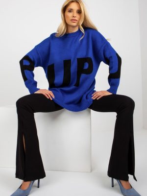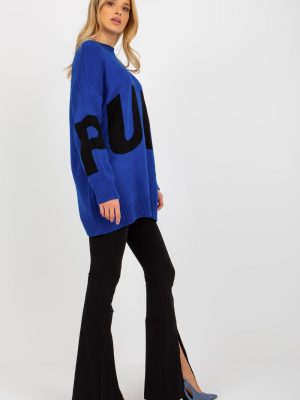 Γυναικείο πουλόβερ με μακρύ μανίκι και στρογγυλή λαιμόκοψη. Διακοσμητικά γράμματα στο μπροστινό μέρος και στα μανίκια.