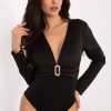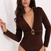 Κομψό και γυναικείο body με μεταλλική διακόσμηση στο μπροστινό μέρος είναι ένας συνδυασμός κομψότητας και άνεσης σε σύγχρονη εκδοχή. Κατασκευασμένο από υψηλής ποιότητας μείγμα πολυεστέρα, βισκόζης και ελαστάνης, προσαρμόζεται τέλεια στη σιλουέτα, αναδεικνύοντας τις καμπύλες της και προσφέροντας άνεση κατά την διάρκεια της χρήσης. Το μοντέλο ξεχωρίζει για το λείο υλικό με διακριτική γυαλάδα και το ντεκολτέ σε σχήμα V, το οποίο αναδεικνύει όμορφα τον λαιμό και προσθέτει μια θηλυκή αίσθηση στην συνολική εμφάνιση. Η μεταλλική διακόσμηση στο μπροστινό μέρος αποτελεί μια κομψή λεπτομέρεια, χάρη στην οποία το body ταιριάζει τέλεια τόσο σε επίσημες στυλιστικές επιλογές όσο και για δουλειά ή για μια βραδινή έξοδο. Το body διαθέτει μακριά μανίκια και κούμπωμα με κουμπάκια, προσφέροντας εξαιρετική άνεση και τέλεια εφαρμογή. Το κανονικό μήκος διασφαλίζει ότι παρουσιάζεται υπέροχα σε συνδυασμό με φούστα ή κομψά παντελόνια με ψηλή μέση.
