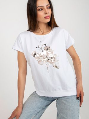 Βαμβακερή μπλούζα με κοντά μανίκια και στρογγυλή λαιμόκοψη. Διακοσμητική εκτύπωση στο μπροστινό μέρος.