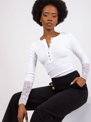 Η μπλούζα από δαντέλα με ραβδώσεις είναι μια πραγματική πανδαισία για τα μάτια. Αυτό το κομψό μοντέλο θα ταιριάξει τέλεια με casual ρούχα και θα δημιουργήσει την τέλεια εμφάνιση για κάθε μέρα, για τη δουλειά ή για την έξοδο στην πόλη. Το ριμπ ύφασμα προσδίδει στην μπλούζα έναν μοναδικό αισθησιακό χαρακτήρα, ενώ η εφαρμογή δαντέλας προσθέτει μια πρωτότυπη γοητεία.