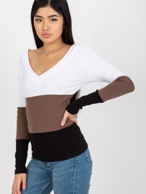 Μπλούζα με μακριά μανίκια και λαιμόκοψη καρδιάς. Μπλούζα από ύφασμα με ραβδώσεις σε τρία χρώματα.