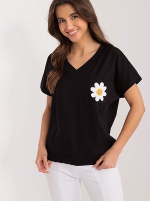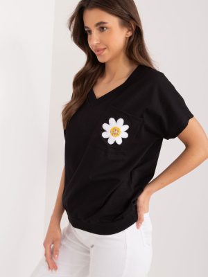 Αυτή η καθημερινή μπλούζα είναι το τέλειο κομμάτι της γκαρνταρόμπας για όσες εκτιμούν την άνεση σε casual στυλ χωρίς να θυσιάζουν τις λεπτές πινελιές. Το απαλό βαμβακερό της ύφασμα προσφέρει άνετη φθορά και αναπνοή, καθιστώντας την ιδανική για καθημερινές εξόδους. Η μπλούζα έχει κανονικό μήκος, καθιστώντας την ευέλικτη και κατάλληλη για πολλές διαφορετικές περιστάσεις. Τα κοντά μανίκια και η λαιμόκοψη v της δίνουν μια casual και διασκεδαστική αίσθηση, ιδανική για τις καλοκαιρινές μέρες. Το κύριο διακοσμητικό στοιχείο είναι ένα κεντημένο λουλούδι μαζί με ζιργκόν που τοποθετείται στην τσέπη του στήθους. Αυτές οι λεπτές αλλά εντυπωσιακές λεπτομέρειες προσδίδουν ιδιαίτερη γοητεία στην μπλούζα και της δίνουν μια λεπτή πινελιά. Επιπλέον, η τσέπη του στήθους είναι ένα πρακτικό χαρακτηριστικό για την αποθήκευση των πιο απαραίτητων μικροαντικειμένων. Αυτή η μπλούζα είναι η τέλεια επιλογή για όσους αναζητούν άνετη αλλά κομψή καθημερινή ένδυση, προσθέτοντας μια λεπτή γοητεία ακόμη και στα πιο απλά casual σύνολα.