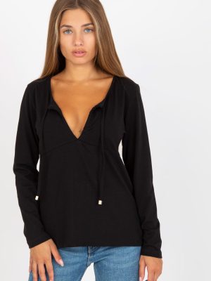 Μπλούζα με μακριά μανίκια και βαθιά λαιμόκοψη. Δέσιμο στη λαιμόκοψη.