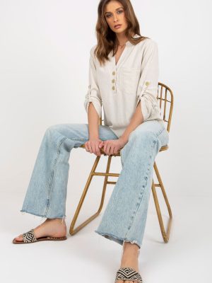 Μπλούζα τύπου πουκάμισο με μακριά μανίκια και λαιμόκοψη. Διακοσμητικό κούμπωμα και τσέπη στο μπροστινό μέρος. Τα μανίκια μπορούν να αναδιπλωθούν. Ιδανική για πολλές περιστάσεις.