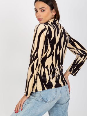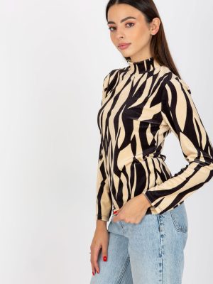 Μακρυμάνικη βελουτέ μπλούζα με όρθιο γιακά. Μπλούζα από ύφασμα με ενδιαφέρον μοτίβο.
