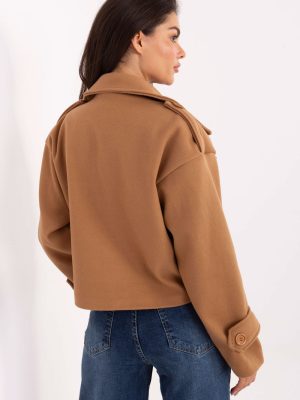 Η κοντή γυναικεία καπαρντίνα είναι ένα κλασικό εξωτερικό ρούχο για την μεταβατική περίοδο σε casual στυλ, που αποδίδει εξαιρετικά τόσο στην καθημερινότητα όσο και στη δουλειά. Κατασκευασμένη από πολυεστέρα, παρουσιάζεται κομψά και είναι πρακτική στη χρήση, ενώ χάρη στην ομαλή υφή της παραμένει διαχρονική και универсτική. Το μοντέλο με κοντό μήκος διαθέτει μακριά μανίκια, φαρδιά πέτα και παγόνια στους ώμους, που του προσδίδουν την χαρακτηριστική εμφάνιση της καπαρντίνας. Το διπλό κουμπί υπογραμμίζει την κλασική γραμμή, ενώ η επένδυση αυξάνει την άνεση κατά τη διάρκεια της φθοράς και την προσοχή στη λεπτομέρεια. Είναι ένα ελαφρύ παλτό χωρίς επένδυση, ιδανικό για την περίοδο φθινόπωρο-χειμώνας-άνοιξη. Ιδανικά συμπληρώνει καθημερινές εμφανίσεις, προσθέτοντας κομψότητα και αστική κομψότητα.