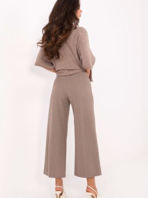 Τα κομψά γυναικεία παντελόνια τύπου culottes είναι μια πρόταση που συνδυάζει στυλ και άνεση. Κατασκευασμένα από υψηλής ποιότητας πολυέστερ με προσθήκη ελαστάνης, είναι λεία, ελαφριά και άνετα στη φόρεμα. Το μοντέλο με τη ψηλή μέση τονίζει όμορφα τη μέση, ενώ οι φαρδιές γραμμές προσδίδουν ελαφρότητα και μοντέρνο χαρακτήρα στη σιλουέτα. Τα παντελόνια κλείνουν με κρυφό φερμουάρ τοποθετημένο στη αριστερή πλευρά, διασφαλίζοντας ένα αισθητικά άψογο τελείωμα. Η απουσία τσεπών τονίζει το κομψό, μινιμαλιστικό στυλ. Ιδανικά τόσο για καθημερινή χρήση, για εργασία, όσο και για επίσημες περιστάσεις, είναι διαχρονικά culottes που ταιριάζουν σε πολλές στυλιστικές προτάσεις.