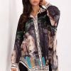 Γυναικεία μπλούζα σε casual στυλ, ιδανική για καθημερινή χρήση και για το γραφείο. Κατασκευασμένη από ένα ελαφρύ και ευχάριστο στην αφή μείγμα βισκόζης και πολυεστέρα, εξασφαλίζει άνεση κατά την διάρκεια της ημέρας. Μοντέλο με πιο μακρύ κόψιμο, κλασικό γιακά και μακριά μανίκια με κουμπιά, κρυμμένα κάτω από μια κομψή ταινία. Σε ολόκληρη την επιφάνεια του υλικού υπάρχει εκτύπωση, ενώ επιπλέον λεπτομέρειες με τη μορφή γραμμάτων στον γιακά, στη ταινία και γύρω από το κάτω μέρος δίνουν στη μπλούζα έναν σύγχρονο, μοναδικό χαρακτήρα. Είναι μια πρόταση για γυναίκες που εκτιμούν την άνεση συνδυασμένη με έναν πρωτότυπο στυλ.