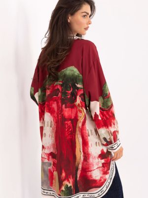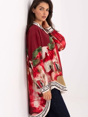 Γυναικεία μπλούζα σε casual στυλ, ιδανική για καθημερινή χρήση και για το γραφείο. Κατασκευασμένη από ένα ελαφρύ και ευχάριστο στην αφή μείγμα βισκόζης και πολυεστέρα, εγγυάται άνεση κατά την διάρκεια όλης της ημέρας. Το μοντέλο έχει μακρύτερη γραμμή με κλασικό γιακά και μακριά μανίκια, κλεισμένα με κουμπιά, κρυμμένα κάτω από μία κομψή λωρίδα. Σε όλη την επιφάνεια του υλικού υπάρχει εκτύπωση, ενώ οι επιπλέον λεπτομέρειες με τη μορφή γραμμάτων στον γιακά, την λωρίδα και γύρω από το κάτω μέρος προσδίδουν στη μπλούζα έναν σύγχρονο, μοναδικό χαρακτήρα. Είναι μια πρόταση για γυναίκες που εκτιμούν την άνεση σε συνδυασμό με έναν πρωτότυπο στυλ.