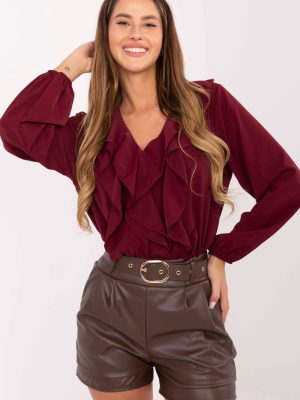 Γυναικεία κομψή μπλούζα με ρεβέρ μπροστά και διακριτικό ζαμπόν είναι η ιδανική πρόταση για τη δουλειά, για επίσημες συναντήσεις καθώς και για καθημερινές εξόδους. Κατασκευασμένη από μείγμα υψηλής ποιότητας πολυεστέρα, βισκόζης και ελαστάνης, συνδυάζει την άνεση της χρήσης με την αντοχή του υλικού. Η λεία υφή και το κανονικό μήκος εξασφαλίζουν κλασική εμφάνιση, ενώ τα φουσκωτά μανίκια προσθέτουν μια θηλυκή χάρη και ελαφρότητα στο σύνολο. Το μοντέλο χωρίς κλείσιμο επιτρέπει άνετη τοποθέτηση, ενώ οι εντυπωσιακές λεπτομέρειες των ρεβέρ και του ζαμπόν δίνουν στη μπλούζα έναν κομψό και στυλάτο χαρακτήρα.