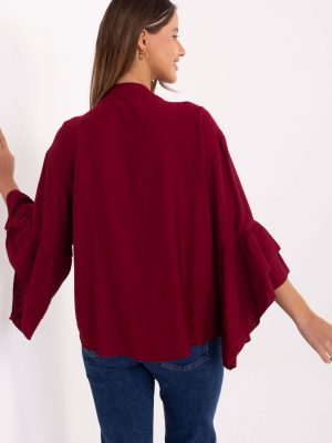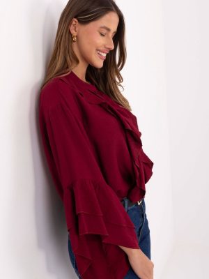 Μια κομψή γυναικεία μπλούζα χωρίς γιακά, κατασκευασμένη από υψηλής ποιότητας βισκόζη, είναι μια εξαιρετική επιλογή τόσο για καθημερινή χρήση όσο και για εργασία ή επίσημες περιστάσεις. Η κλασική γραμμή με το στάνταρ μήκος τονίζει τη σιλουέτα, προσφέροντας ταυτόχρονα άνεση και ελευθερία κινήσεων. Το μοντέλο διακρίνεται για τα μακριά μανίκια που καταλήγουν σε φρου-φρου από το μέσο μήκος, προσδίδοντας στο σύνολο μια διακριτική, γυναικεία αίσθηση. Στο μπροστινό μέρος υπάρχει μια διακοσμητική ραφή, η οποία προσθέτει στην μπλούζα κομψότητα και πρωτοτυπία. Ο θηλυκός λαιμός και το κουμπί τονίζουν τον κλασικό αλλά ταυτόχρονα μοντέρνο στυλ. Ο ομαλός ύφασμα με κομψή φινίρισμα κάνει τη μπλούζα να ταιριάζει τέλεια τόσο με παντελόνια όσο και με φούστες. Αυτό είναι ένα καθολικό στοιχείο της γκαρνταρόμπας, ιδανικό για γυναίκες που εκτιμούν τη κλασική μόδα με μια πινελιά εκλεπτυσμένου στυλ.