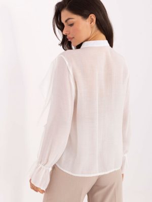 Κλασικό γυναικείο πουκάμισο σε εκλεπτυσμένο στυλ, ιδανικό για καθημερινή χρήση, στη δουλειά και σε επίσημες περιστάσεις. Ραμμένο από συνδυασμό λυοσέλλου και πολυεστέρα, συνδυάζει την άνεση, την ελαφρότητα και την ανθεκτικότητα. Μοντέλο με κανονικό μήκος, με λαιμόκοψη σε σχήμα V και κουμπιά, έχει εμπλουτιστεί με εντυπωσιακό φουρό και διακριτικές ρίγες στο εμπρός μέρος, που προσδίδουν συνολικά μια θηλυκή και κομψή αίσθηση. Τα μακριά μανίκια που τελειώνουν με ρίγα τονίζουν την κομψότητα και την μοναδικότητα αυτής της πρότασης.