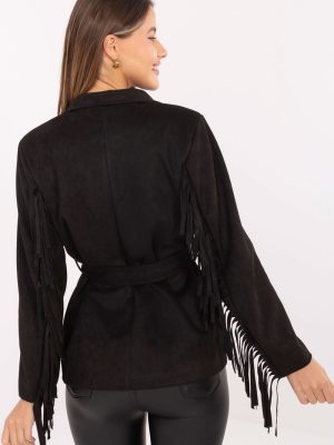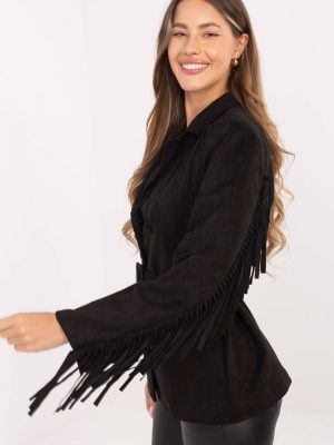 Μια στυλάτη και μοναδική σουέτ σακάκι σε casual στυλ, ιδανική για καθημερινή χρήση. Κατασκευασμένη από υψηλής ποιότητας μείγμα πολυεστέρα και ελαστάνης, είναι μαλακή, ευχάριστη στην επαφή και προσαρμόζεται τέλεια στη σιλουέτα. Το μοντέλο έχει στάνταρ μήκος με μακριά μανίκια και κουμπί, προσφέροντας μια κομψή και θηλυκή εμφάνιση. Οι ραμμένες ώμοι διακριτικά αναδεικνύουν τη γραμμή των ώμων, ενώ οι καπιτονέ κολάρο προσθέτουν στην εμφάνιση κλασικό χαρακτήρα. Το σακάκι διαθέτει φόδρα που εξασφαλίζει άνεση στο φόρεμα και ζώνη με κουμπί, που όμορφα τονίζει τη μέση. Οι φούντες στα μανίκια και στο μπροστινό μέρος του προσδίδουν μια μοντέρνα, πρωτότυπη εμφάνιση στο πνεύμα του boho. Αυτή είναι η ιδανική πρόταση για γυναίκες που εκτιμούν τον συνδυασμό κομψότητας, άνεσης και μοναδικού στυλ, κατάλληλη τόσο για τζιν όσο και για φορέματα.