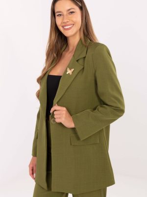 Η κομψή γυναικεία σακάκι σε κανονικό μήκος είναι ένα κλασικό κομμάτι που μπορεί να φορεθεί τόσο στη δουλειά όσο και σε επαγγελματικές συναντήσεις ή σε καθημερινές στυλιστικές επιλογές. Το μοντέλο με κουμπί διαθέτει ενσωματωμένα μαξιλαράκια στους ώμους, τα οποία αναδεικνύουν όμορφα τη σιλουέτα και προσδίδουν κομψό χαρακτήρα. Το σακάκι έχει μακρύ μανίκι, λεία υφή υλικού και μια διακριτική διακοσμητική καρφίτσα στην πένα, που αποτελεί στυλιστική λεπτομέρεια. Κατασκευασμένο από υψηλής ποιότητας ύφασμα, συνδυασμό πολυεστέρα και ελαστάνης, εγγυάται άνεση και σωστή εφαρμογή. Η εσωτερική επένδυση προσφέρει καλαίσθητη φινέτσα και ανθεκτικότητα στο σχέδιο. Είναι μια διαχρονική πρόταση, ιδανική για συνδυασμό με κλασικούς παντελόνες, φούστα ή φόρεμα, δημιουργώντας κομψές στυλιστικές επιλογές για διάφορες περιστάσεις.
