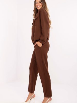Γυναικείο casual σετ κατασκευασμένο από μαλακό, λεπτό και εξαιρετικά ευχάριστο στην αφή ύφασμα. Το σετ αποτελείται από μια φούτερ με φερμουάρ και παντελόνι με διακοσμητική ζώνη με κλιπ στη μέση, δημιουργώντας ένα στυλάτο και άνετο σύνολο για καθημερινές εμφανίσεις. Η φούτερ διαθέτει γιακά, μακριά μανίκια και τσέπες cargo με καπάκια μπροστά, καθώς και διακριτικά παραμάνες στις τσέπες ως κομψή λεπτομέρεια. Τα παντελόνια με ψηλή μέση και στενές κνήμες είναι εξοπλισμένα με πλαϊνές τσέπες, συνδυάζοντας άνεση με μοντέρνα γραμμή. Η λεία υφή και ο συνδυασμός βισκόζης με ελαστάνη εγγυώνται απαλότητα, ελαστικότητα και άνεση κατά την φθορά. Είναι ένα σύνολο ιδανικό για καθημερινές εξόδους, παρέχοντας ελευθερία κινήσεων και κομψή, casual εμφάνιση.