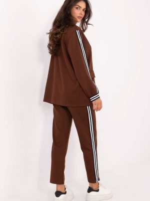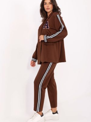 Το γυναικείο σύνολο σε casual στιλ είναι ο ιδανικός συνδυασμός άνεσης και μοντέρνας αισθητικής. Φτιαγμένο από ύφασμα τύπου βούτυρο, εξαιρετικά μαλακό, λεπτό και ευχάριστο στην αφή, εξασφαλίζει μέγιστη άνεση κατά την χρήση. Το σακάκι κλείνει με κουμπί και έχει μακριά μανίκια διακοσμημένα με κοψίματα και ένα διακοσμητικό patch στο ύψος του στήθους, κάνοντάς το να αποκτά έναν μοντέρνο, σπορ και κομψό χαρακτήρα. Το παντελόνι με στενές παντελονοκόντες και ψηλή μέση έχει πρακτικές πλαϊνές τσέπες και κορδόνι στη μέση, επιτρέποντας την προσαρμογή του στη σιλουέτα. Τα κοψίματα κατά μήκος των παντελονοκόντων τονίζουν το δυναμικό στυλ του συνόλου. Το σύνολο θα είναι εξαιρετικό για καθημερινή χρήση, ομαλό, στιλάτο και εξαιρετικά άνετο.