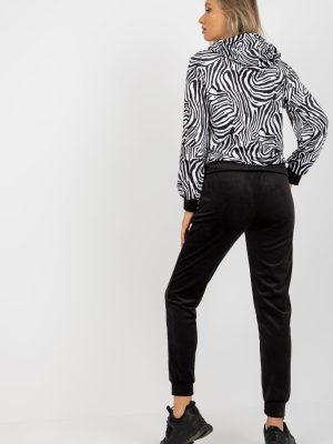 Σετ από βελούδο που αποτελείται από φούτερ και παντελόνι. Μπλούζα με animal print, μακριά μανίκια και κουκούλα. Τσέπη καγκουρό στο μπροστινό μέρος. Μακρύ παντελόνι με τσέπες.