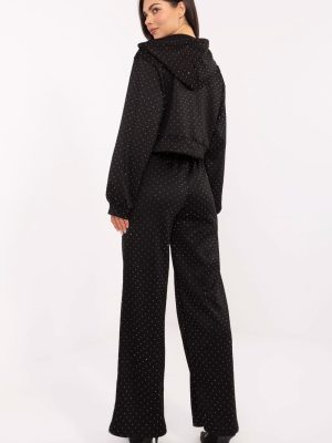 Ένα στυλάτο και άνετο γυναικείο σετ φόρμας είναι ο ιδανικός συνδυασμός κομψότητας και άνεσης για καθημερινή χρήση. Το σετ αποτελείται από ένα φούτερ με φερμουάρ, κουκούλα και κορδόνια, καθώς και παντελόνια με λάστιχο στην μέση, δημιουργώντας ένα μοντέρνο και ταυτόχρονα πρακτικό σύνολο. Το μοντέλο είναι κατασκευασμένο από μείγμα υψηλής ποιότητας βισκόζης και πολυεστέρα με ποικιλία υφής, το οποίο πέφτει όμορφα και εξασφαλίζει άνεση κατά τη φορά. Ολόκληρη η επιφάνεια κοσμείται από εντυπωσιακές εφαρμογές με στρας, προσδίδοντας στο σετ κομψό χαρακτήρα και λεπτή λάμψη. Τα παντελόνια ψηλής μέσης με φαρδιές, μακριές μπατζάκια και πλαϊνές, εσοχές τσέπες εξασφαλίζουν άνεση και ελευθερία κινήσεων. Το φούτερ με μακριά μανίκια ολοκληρώνει το σύνολο, κάνοντάς το ιδανικό για καθημερινές στιλιστικές επιλογές, από χαλαρές εξόδους έως συναντήσεις σε κομψό, αστικό στυλ. Αυτό το σετ είναι συνδυασμός άνεσης φόρμας και εκλεπτυσμένης εμφάνισης, που θα σας επιτρέψει να φαίνεστε μοντέρνες και να νιώθετε ελεύθερες σε κάθε περίσταση.