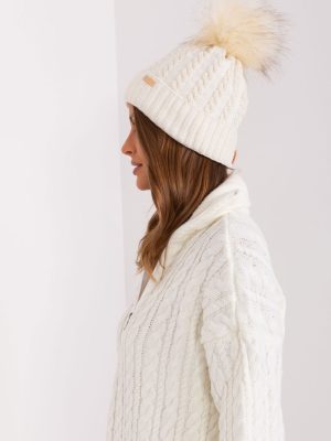 Γυναικείος χειμωνιάτικος σκούφος με γυριστό, διακοσμητικό καρό και πον-πον.