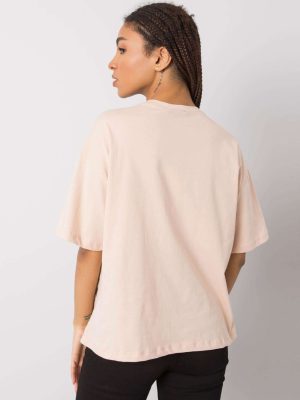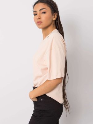Γυναικείο t-shirt σε φαρδιά γραμμή με κοντά μανίκια και στρογγυλή λαιμόκοψη. Διακοσμητική αλυσίδα στο μπροστινό μέρος.