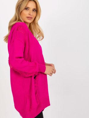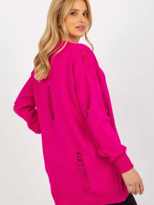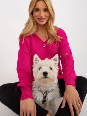 Μακρυμάνικη ζακέτα με κουμπιά. Πουλόβερ με λαιμόκοψη καρδιάς και διακοσμητικές τρύπες.